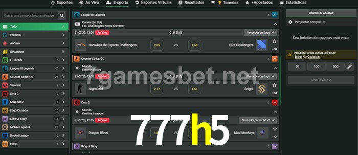 A aposta 777h5 oferece aos jogadores a experiência mais conveniente de apostas em eSports!
